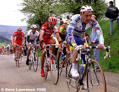 The string of riders is being lead by Paolo Lanfranchi (Mapei).