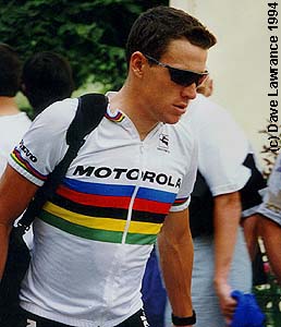 Lance Armstrong. Even world champions have to carry their own bags! |